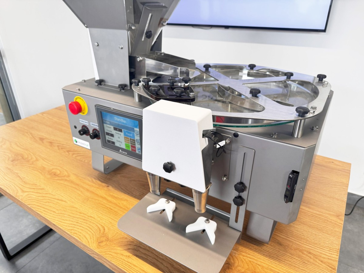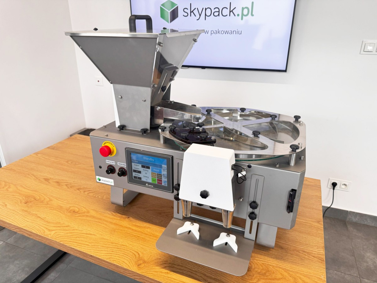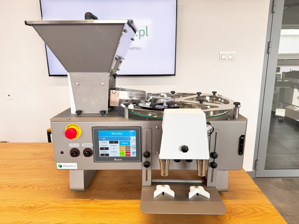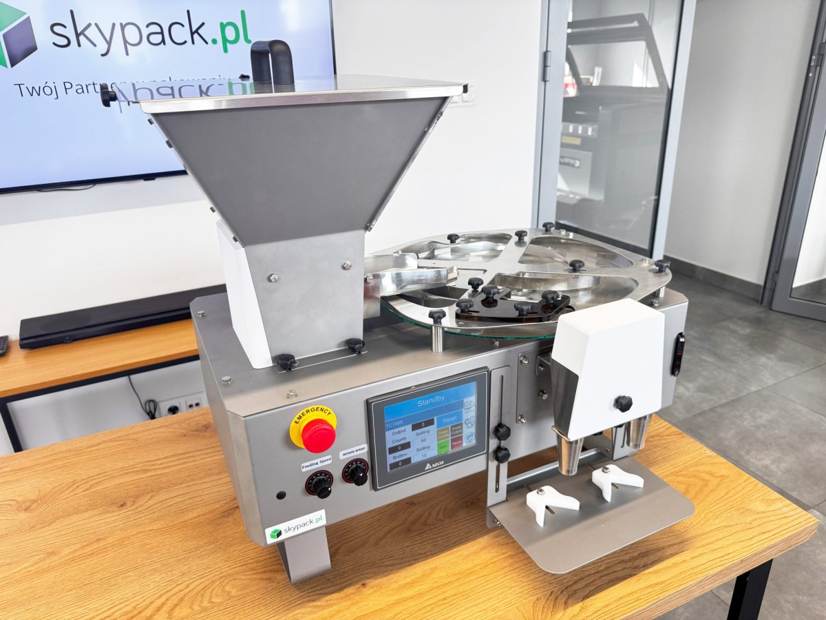 LK-1000 to kompaktowa, stołowa liczarka kapsułek i tabletek, zaprojektowana dla małych i średnich zakładów farmaceutycznych, suplementacyjnych oraz spożywczych. Urządzenie umożliwia szybkie i dokładne liczenie oraz napełnianie tabletek, kapsułek, gum do żucia i pigułek do pojemników plastikowych lub szklanych.