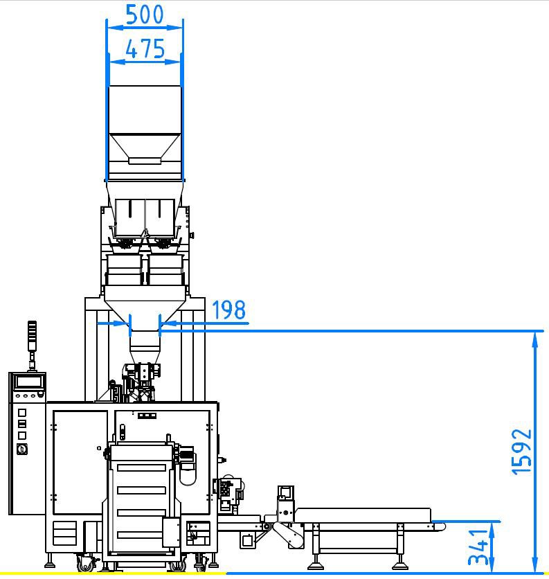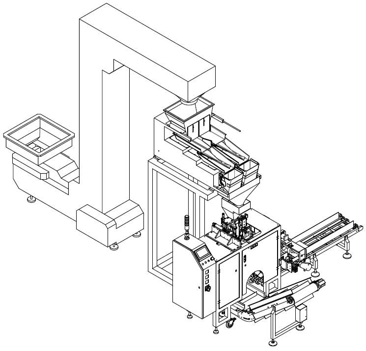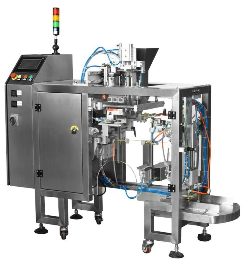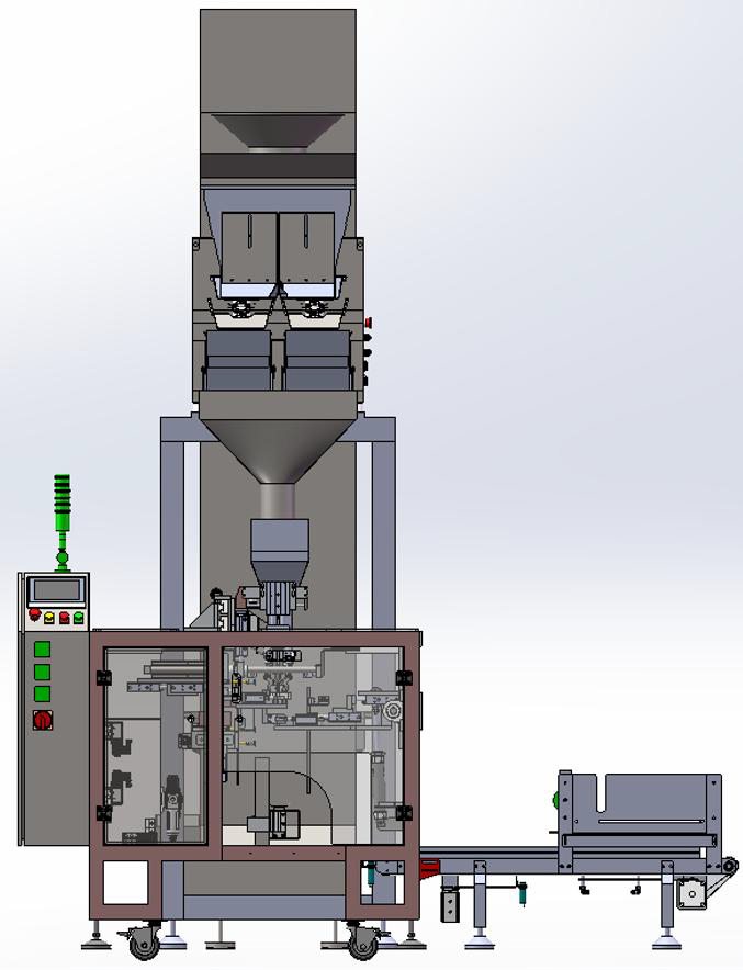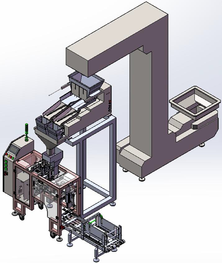 Maszyny typu premade pouch / doypack to najlepsze rozwiązanie, gdy chcesz pakować produkt w estetyczne, gotowe torebki (np. doypack ze struną), bez formowania opakowania z rolki folii. Urządzenie automatycznie pobiera torebkę z magazynku, otwiera ją, napełnia odważoną porcją, a następnie wykonuje zgrzew i wyprowadza gotową paczkę na odbiór. W poniższej konfiguracji system został dobrany pod pakowanie w porcjach 10-2000 [g] torebki zipper pouch.