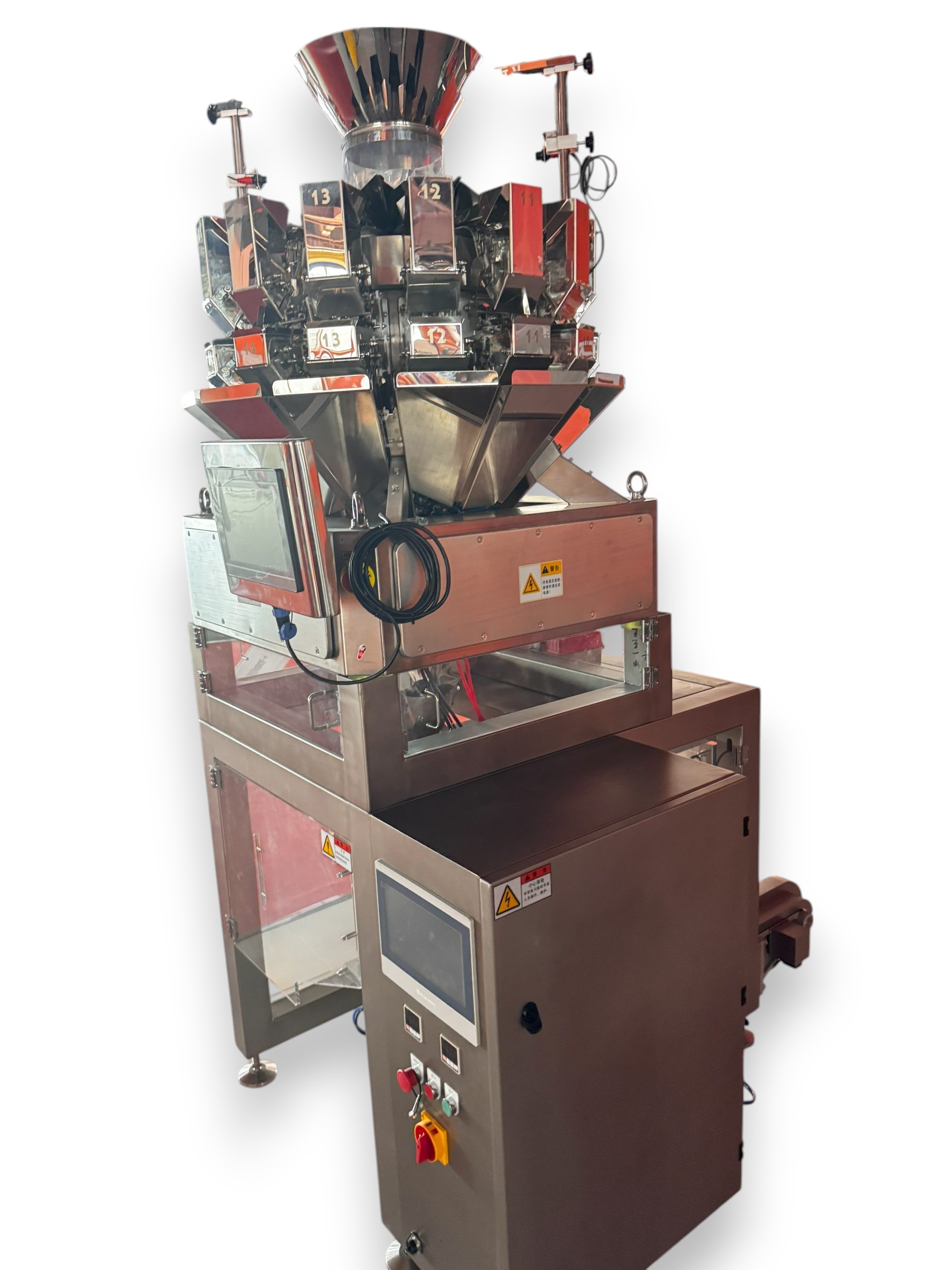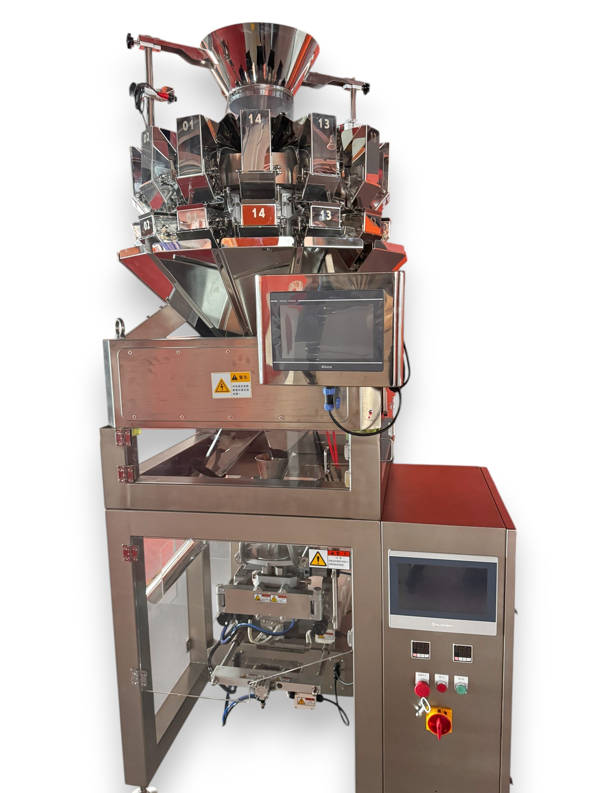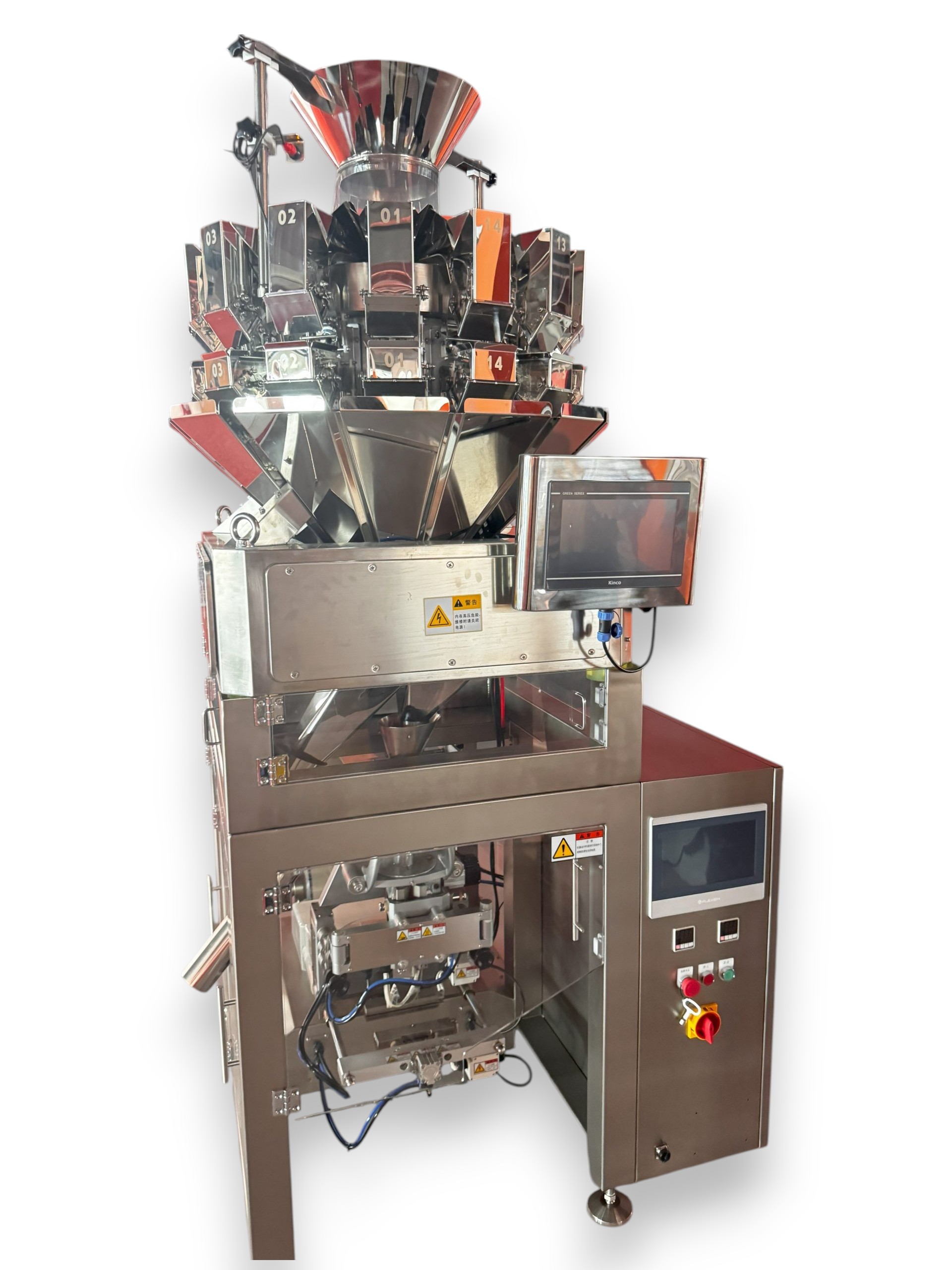 VT-180YT to nowoczesna, w pełni zautomatyzowana, zintegrowana pionowa maszyna pakująca typu VFFS (Vertical Form Fill Seal), przeznaczona do precyzyjnego i wydajnego pakowania produktów sypkich, drobnych oraz kawałkowych. Zintegrowana z wagą kombinacyjną 14-głowicową marki HIGH DREAM, stanowi kompaktowe rozwiązanie dla wielu branż – od spożywczej po przemysłową. Została zaprojektowana z myślą o szybkich i dokładnych procesach pakowania produktów sypkich, granulowanych, drobnych lub kawałkowych – takich jak: słodycze, orzechy, bakalie, snacki, suszone owoce, makarony, granulaty, karma dla zwierząt itp.