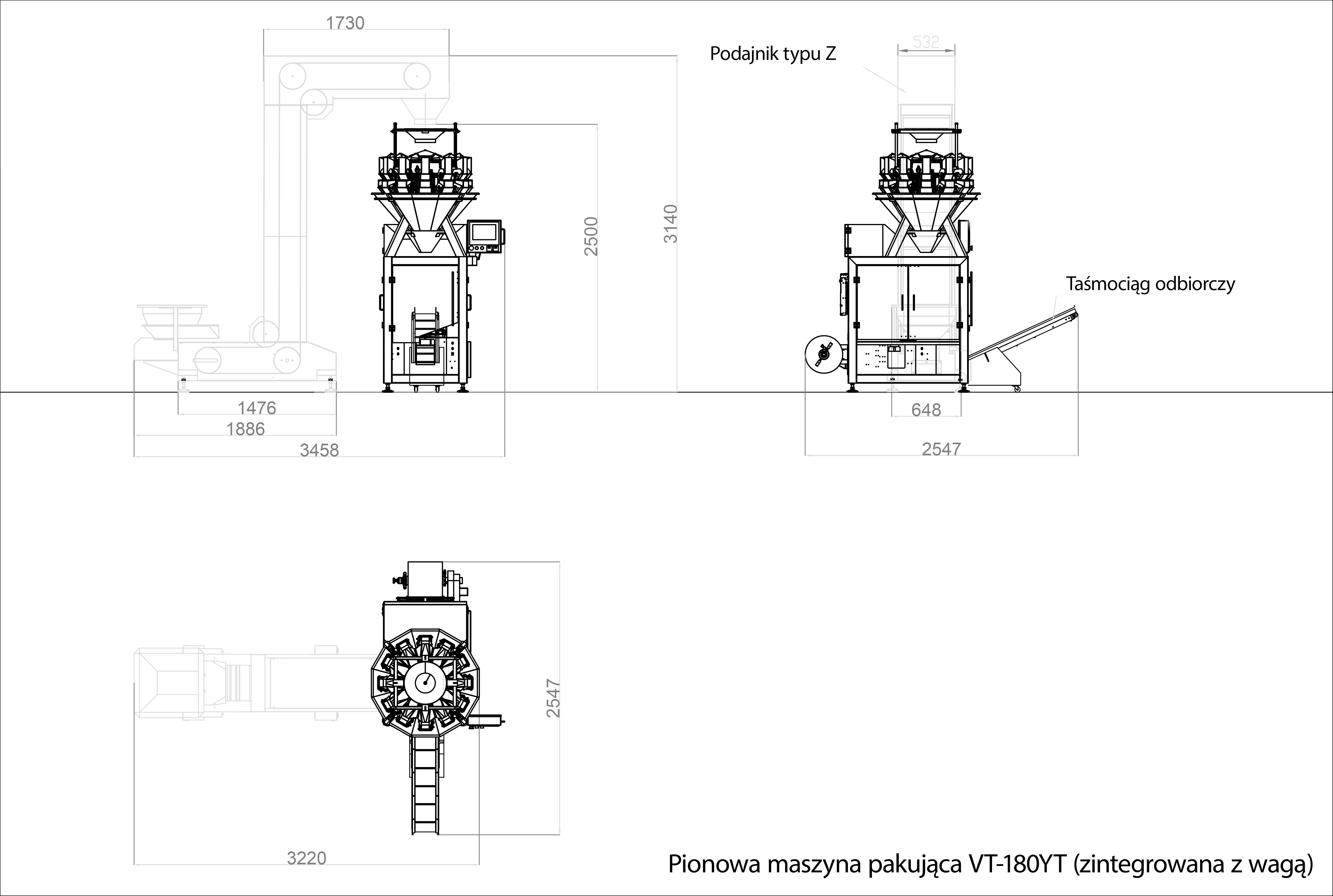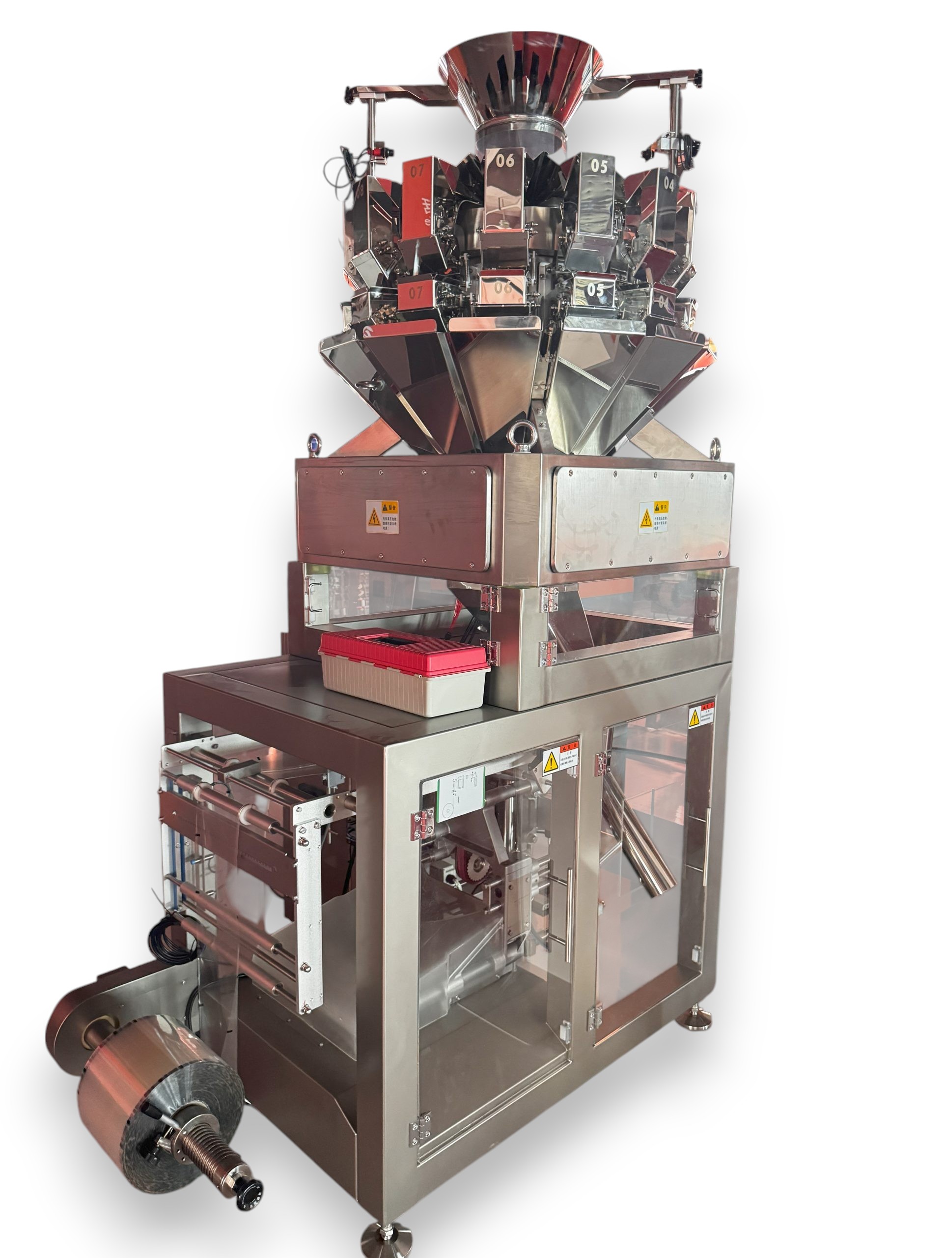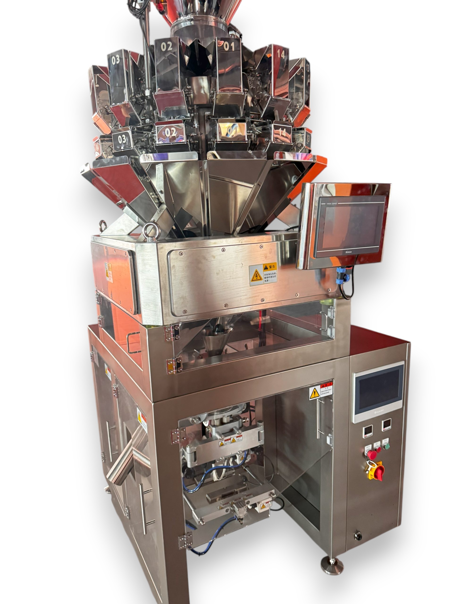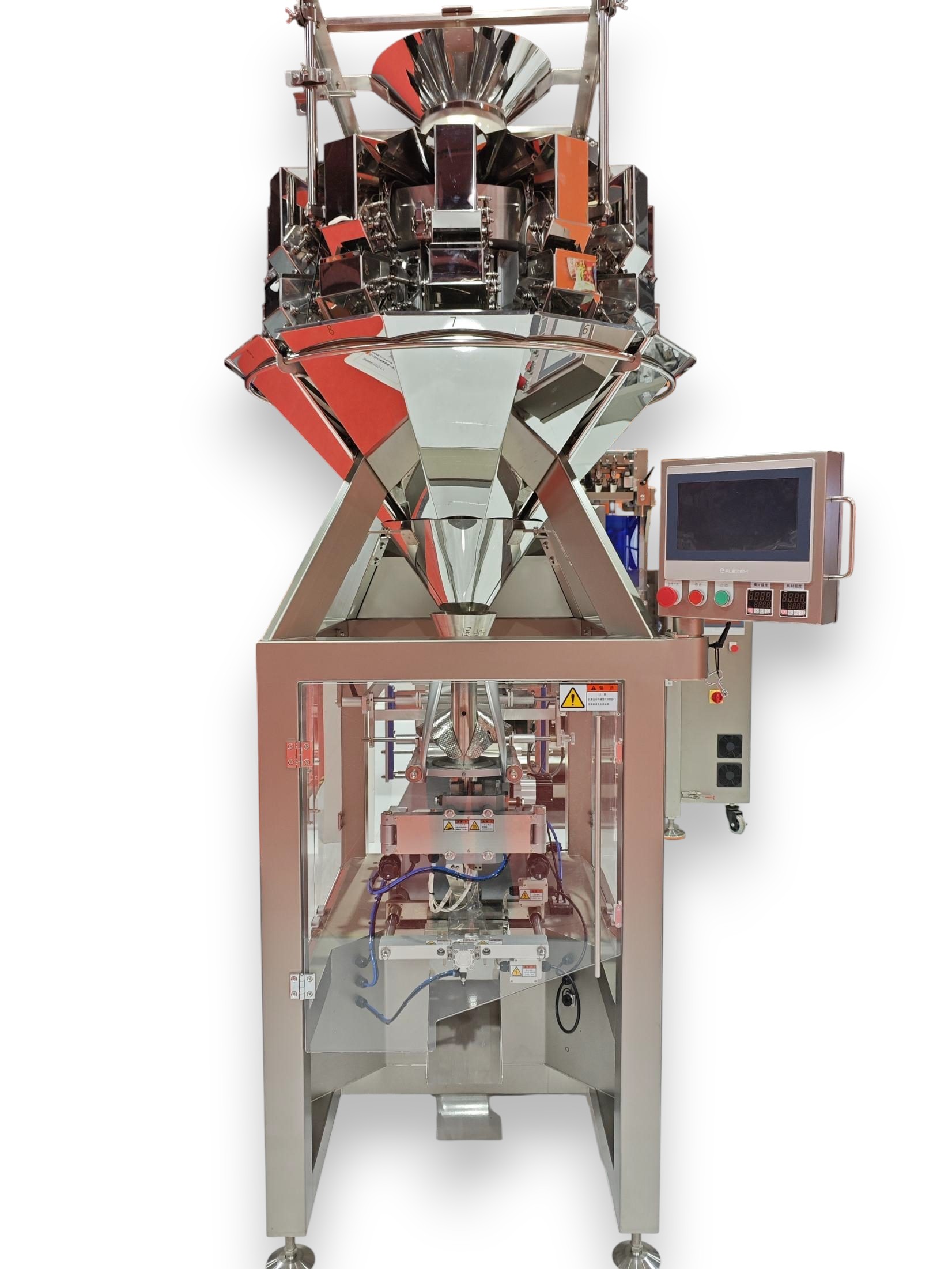 VT-180YT to nowoczesna, w pełni zautomatyzowana, zintegrowana pionowa maszyna pakująca typu VFFS (Vertical Form Fill Seal), przeznaczona do precyzyjnego i wydajnego pakowania produktów sypkich, drobnych oraz kawałkowych. Zintegrowana z wagą kombinacyjną 14-głowicową marki HIGH DREAM, stanowi kompaktowe rozwiązanie dla wielu branż – od spożywczej po przemysłową. Została zaprojektowana z myślą o szybkich i dokładnych procesach pakowania produktów sypkich, granulowanych, drobnych lub kawałkowych – takich jak: słodycze, orzechy, bakalie, snacki, suszone owoce, makarony, granulaty, karma dla zwierząt itp.