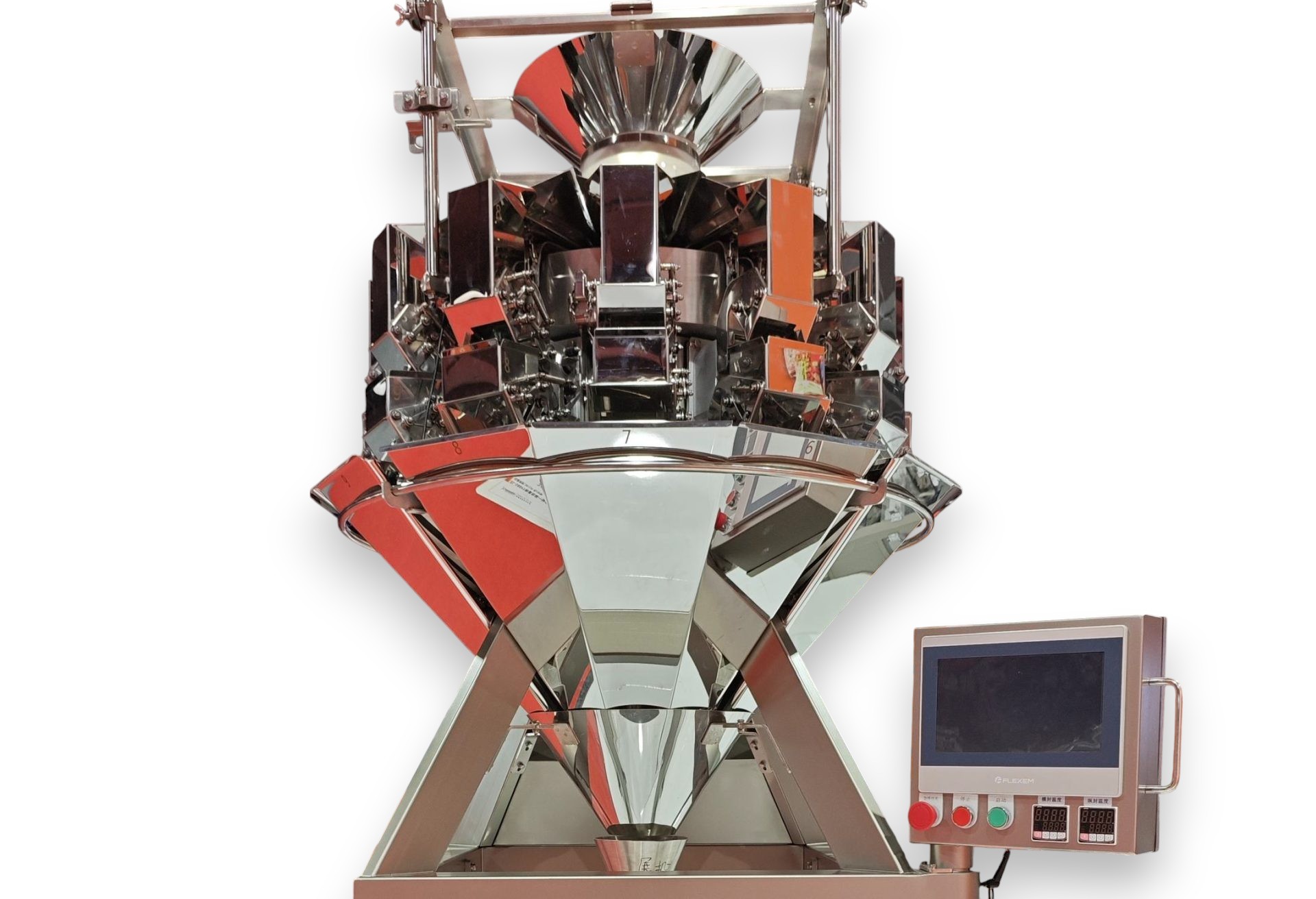 Pionowa maszyna pakująca: system wagowy. Pakowanie ziaren na wadze 14 komorowej