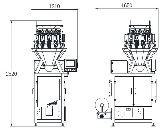 Wymiar maszyny: 1650 x 1210 x 2520 mm [L x W x H]
