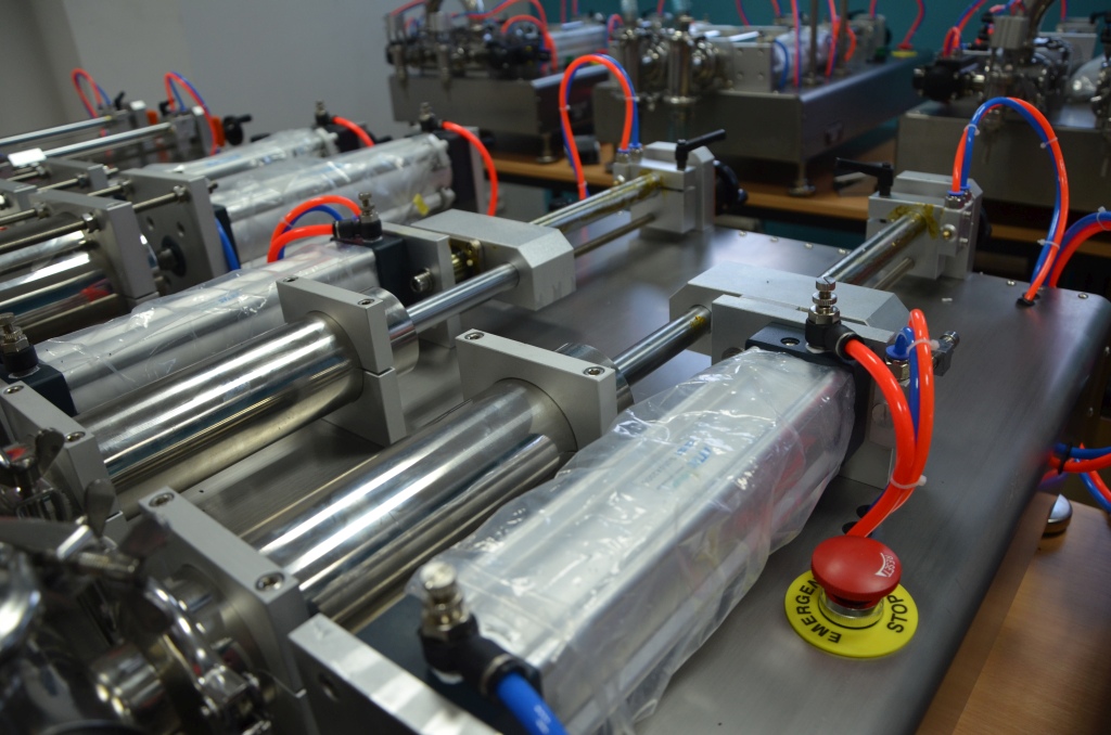 W standardzie montujemy uszczelki silikonowe. Znajdują się one w nalewaku, zaworze trójdrożnym oraz na samym tłoku. W przypadku kiedy produkt jest agresywny lub reaguje z silikonem możemy zamienić uszczelnienia na inne np. vitonowe lub teflonowe.