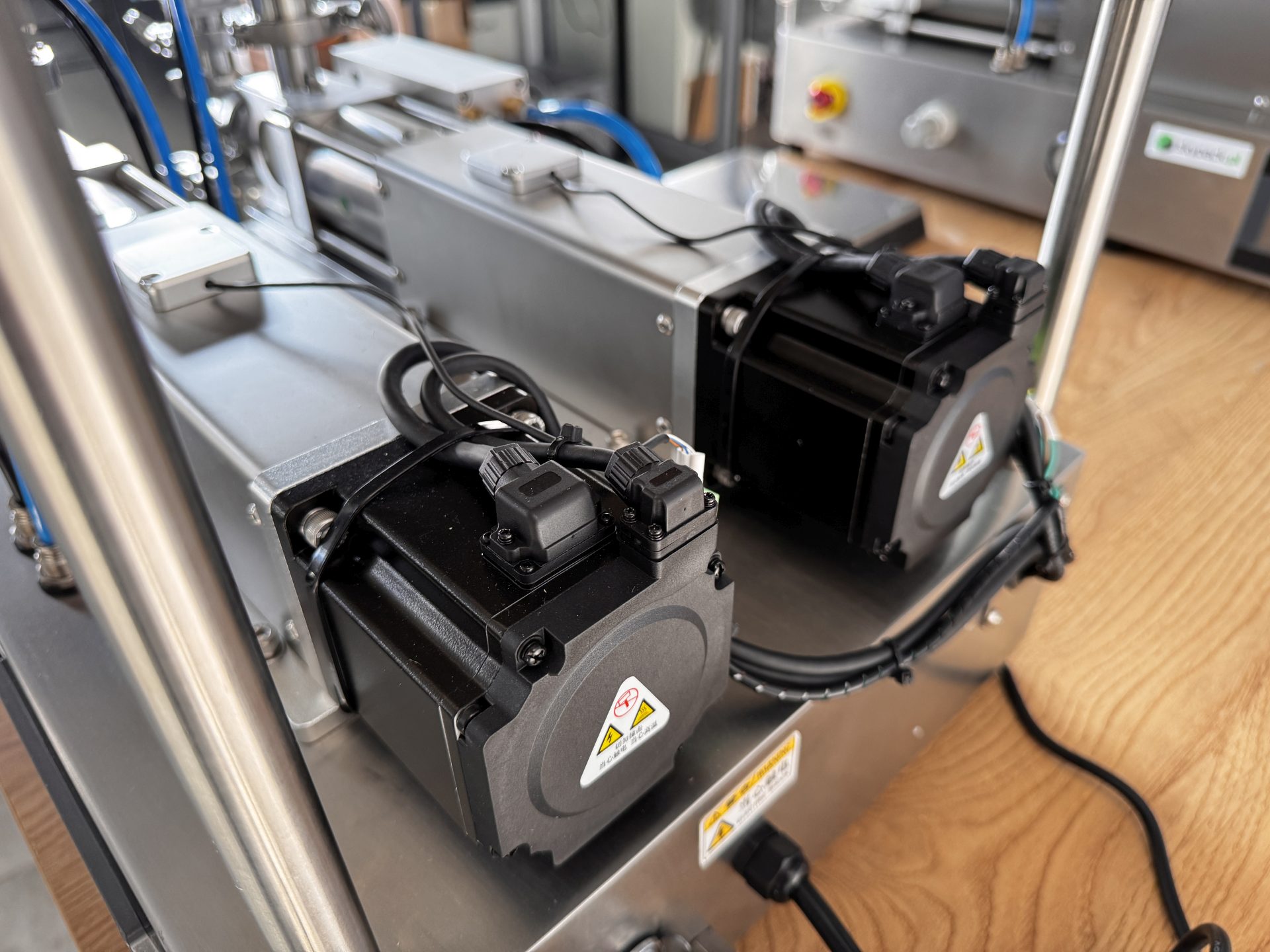 Serwonapęd w dozownicy tłokowej daje zamkniętą pętlę kontroli położenia, dzięki czemu osiągasz dużo lepszą dokładność i powtarzalność porcji (typowo ±0,2–0,5%) niż w pneumatyce. Programowalne profile prędkości oraz suck-back/anti-drip pozwalają nalewać bez pienienia i kapania, a receptury na HMI skracają przezbrojenia do sekund. Serwo zapewnia też większą siłę i płynność ruchu, więc radzi sobie z gęstymi mediami i krótkimi czasami cyklu. Dodatkowo obniża koszt eksploatacji (mniej sprężonego powietrza, niższy hałas, mniej serwisu).