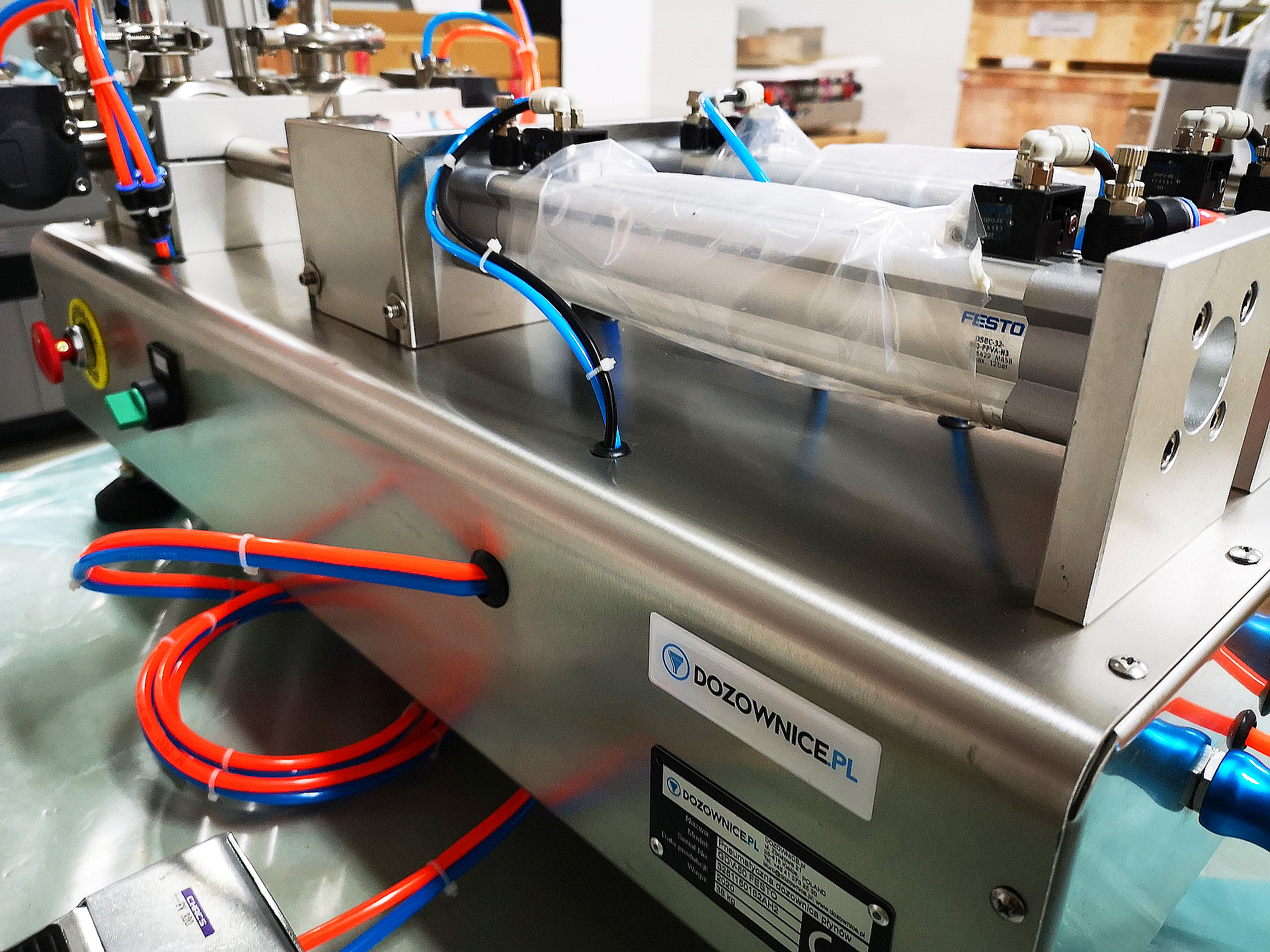 Dozownica GSV-50 to w pełni polski produkt, zaprojektowany i wyprodukowany w naszej firmie. Jest to uniwersalne urządzenie, które sprawdzi się w dozowaniu zarówno rzadkich, wodnistych cieczy, jak i bardzo gęstych substancji, takich jak kremy, kleje czy ketchup. Dozownica jest wyposażona w wysokiej jakości komponenty, w tym siłowniki renomowanej firmy FESTO, co zapewnia stabilną i niezawodną pracę.