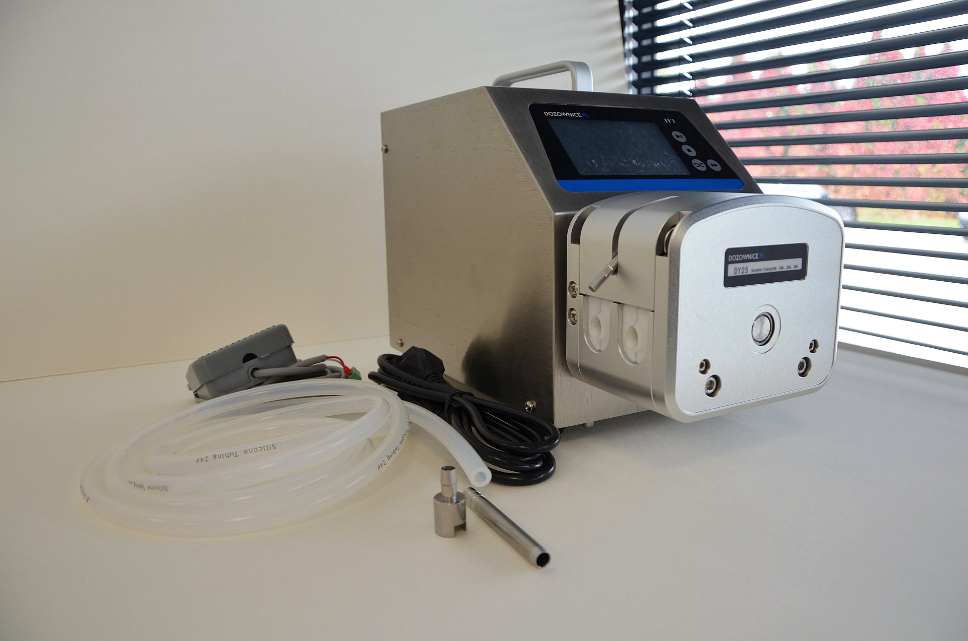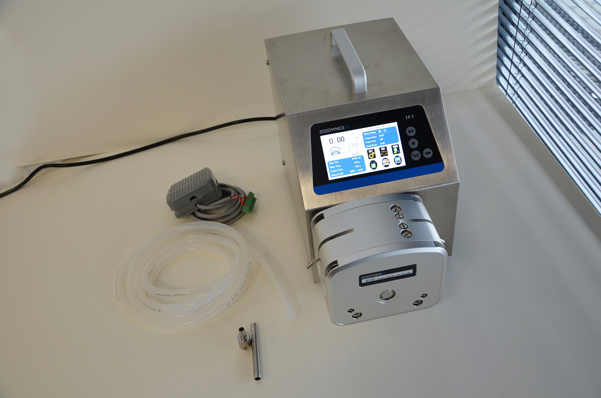 Model IF to wyspecjalizowana pompa perystaltyczna z serwo motorem i podwójnym rzędem rolek ze stali nierdzewnej, który ogranicza pulsację przepływu. Zapewnia stabilne, powtarzalne dozowanie nawet przy cieczach gęstych i lepkich, przy maksymalnym przepływie do 4340 ml/min. Przepływ produktu odbywa się wyłącznie wewnątrz przewodu – bez kontaktu z elementami pompy – co ułatwia utrzymanie higieny i skraca czasy przezbrojeń.