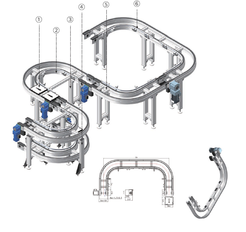 ✅ Możliwość wykonania taśmociągu w linii prostej lub w określonych promieniach zakrętów