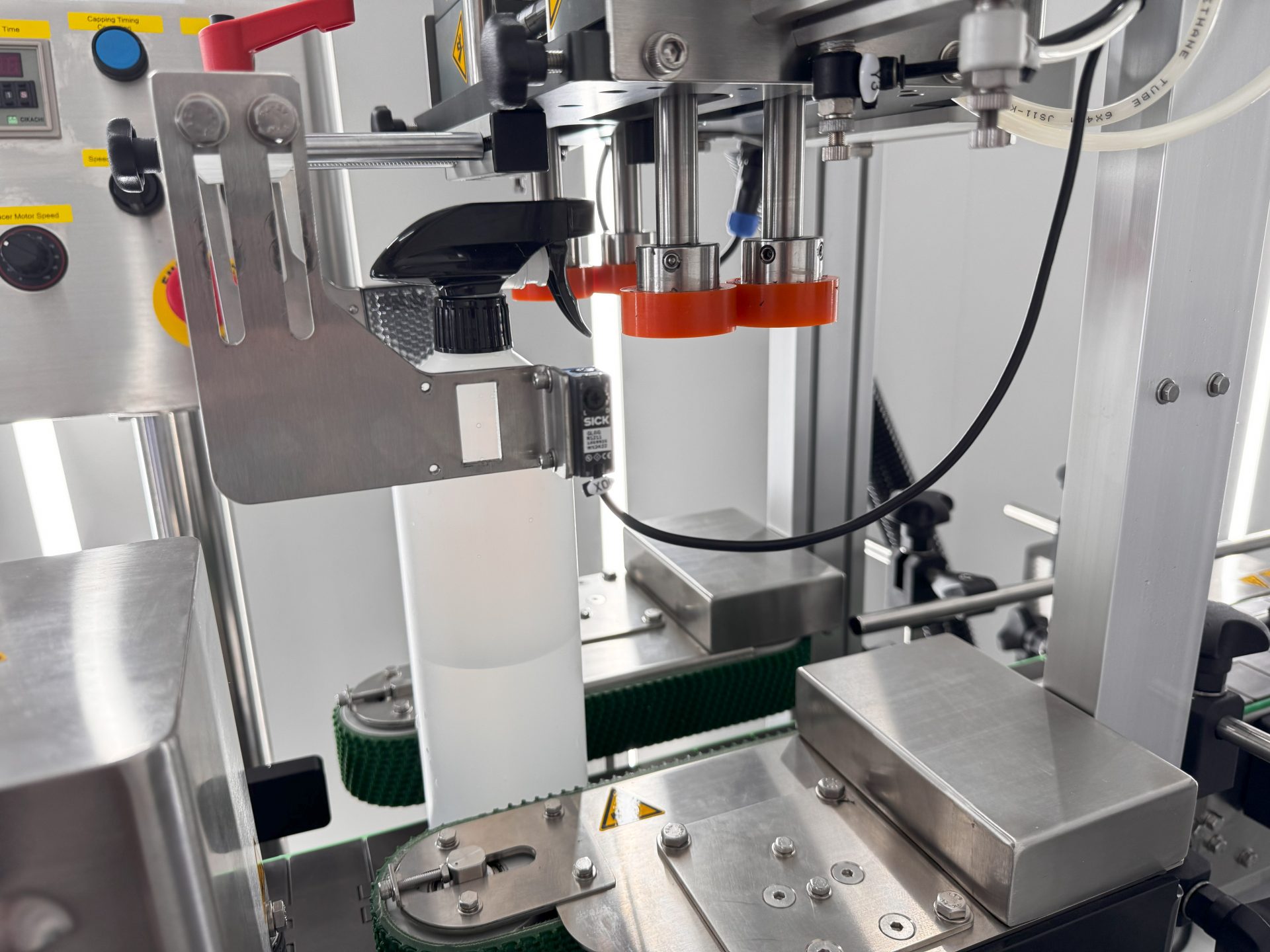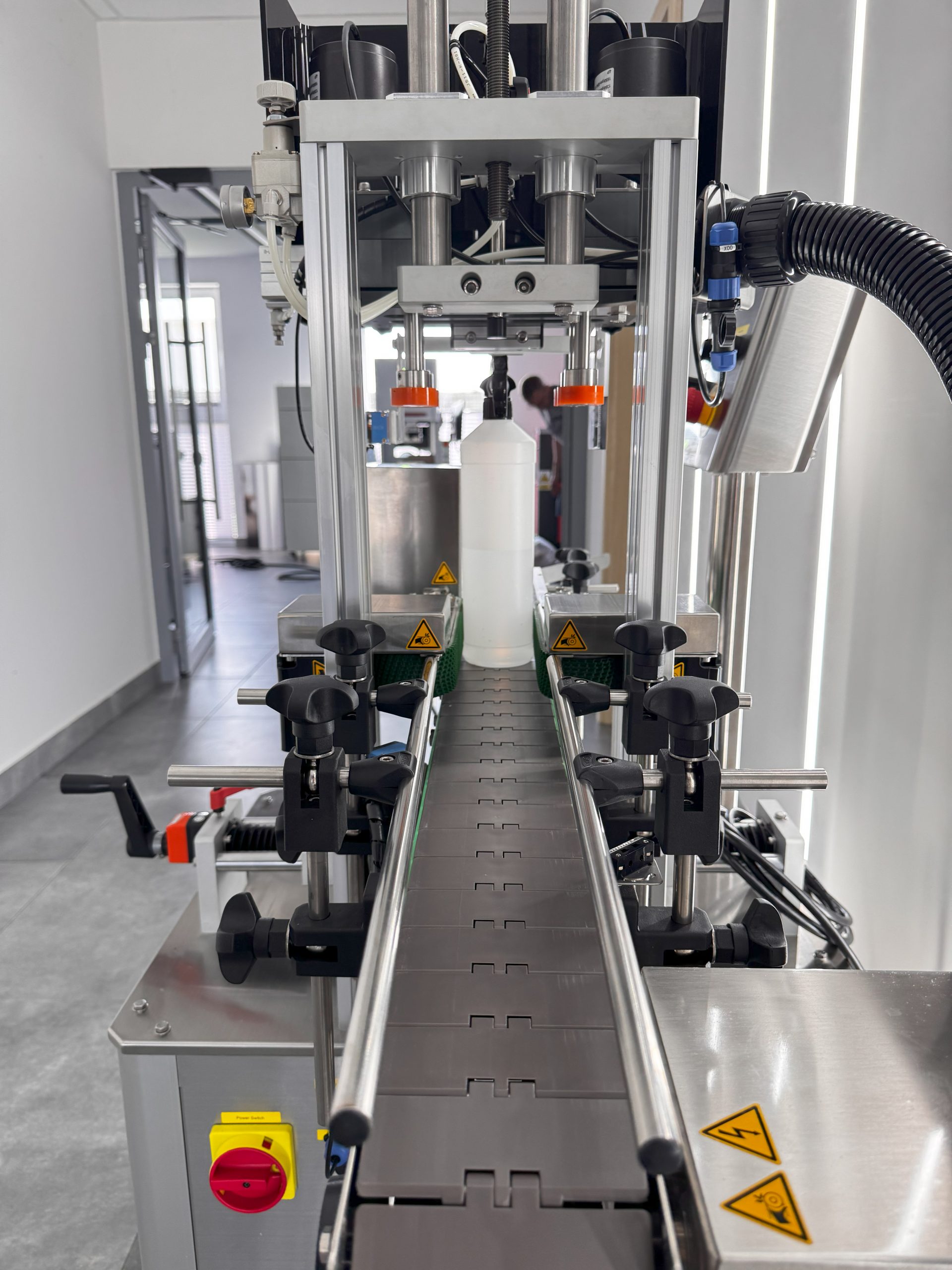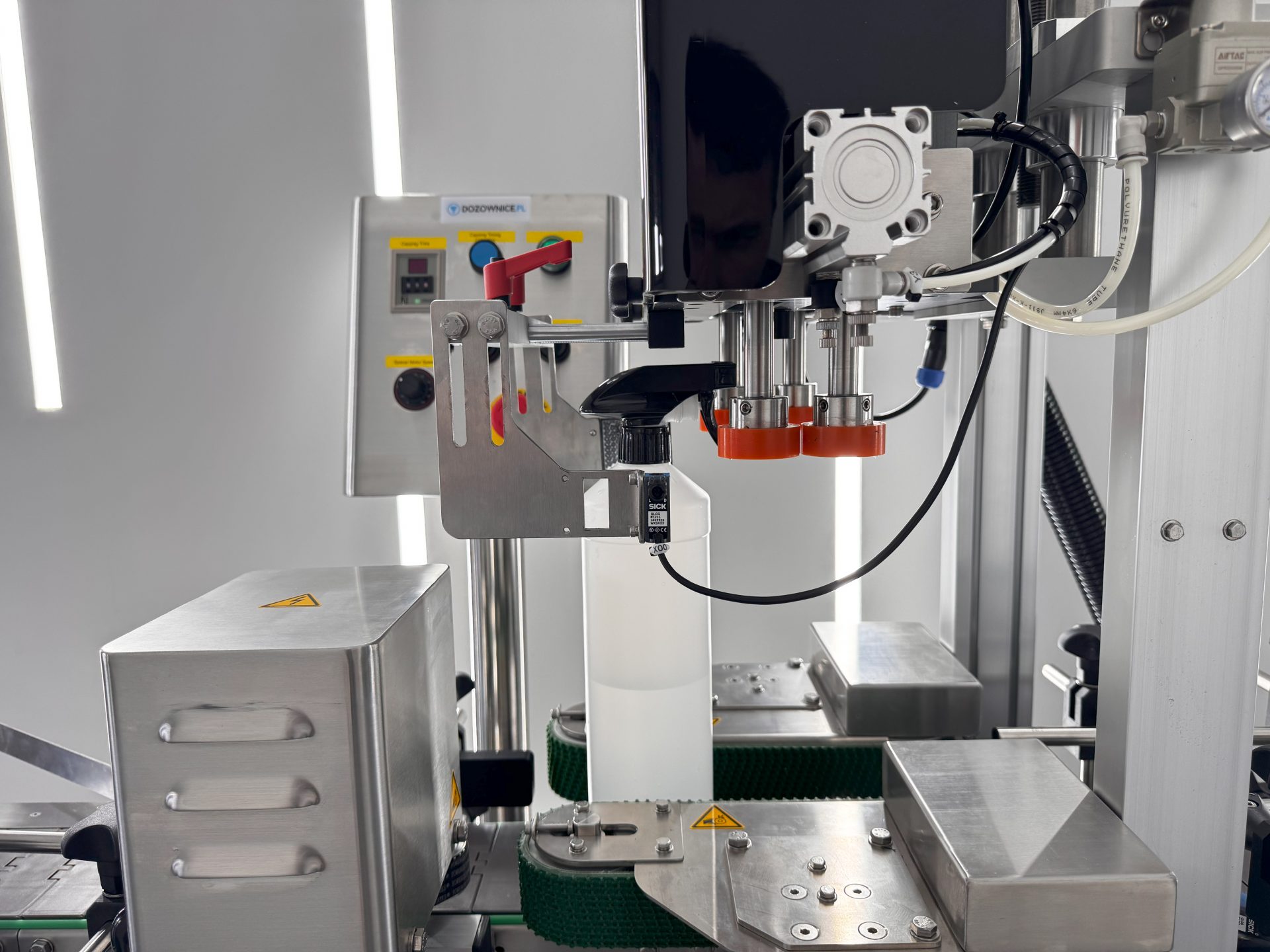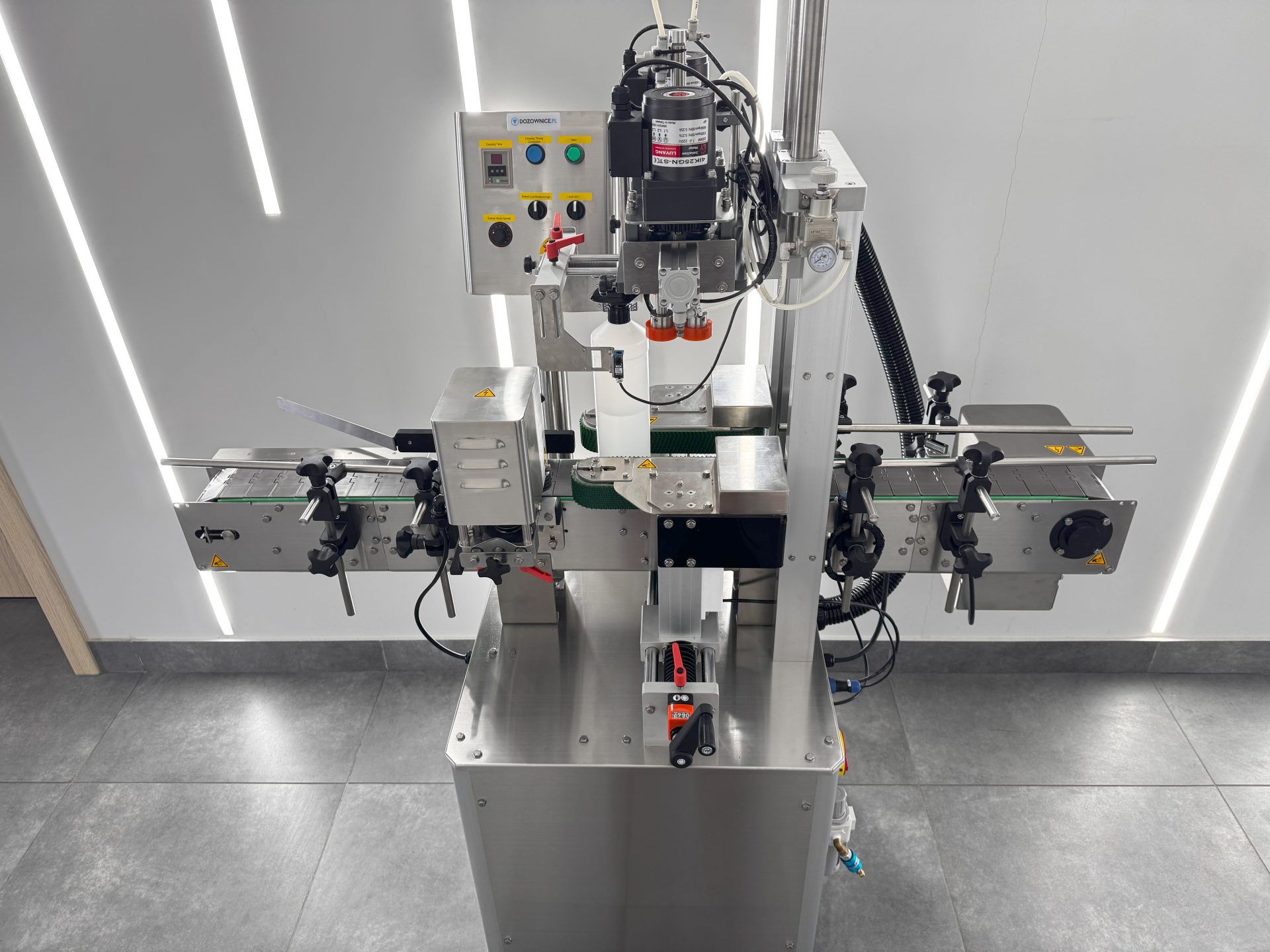 Automatyczna zakręcarka rolkowa CS-3000 jest maszyną uniwersalną. Jest to najlepszy wybór dla różnych rodzai butelek. Maszyna jest w stanie zakręcać zwykłe zakrętki, triggery, dozowniki, pompki, zakrętki z zabezpieczeniami.