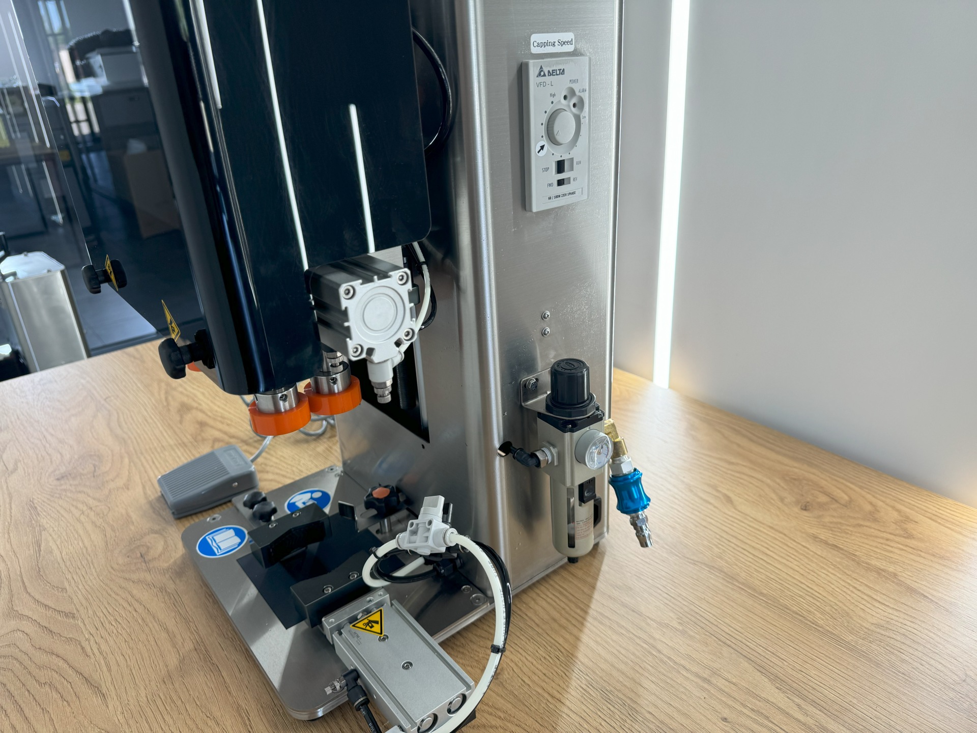 W odpowiedzi na potrzeby firm, które dążą do automatyzacji procesów pakowania bez ponoszenia nadmiernych kosztów zakupu w pełni zautomatyzowanych linii, przedstawiamy zakręcarkę półautomatyczną CS-1000. To niezawodne urządzenie z linii zakręcarek serii C, które nie tylko zakręcają butelki, ale także posiadają funkcję dociskania zakrętki, co czyni ją niezwykle uniwersalnym narzędziem. Idealna do butelek o maksymalnej wysokości 260 mm, doskonale sprawdza się w małych i średnich przedsiębiorstwach. Wyposażona w doskonałe silniki indukcyjne-ciche i precyzyjne.